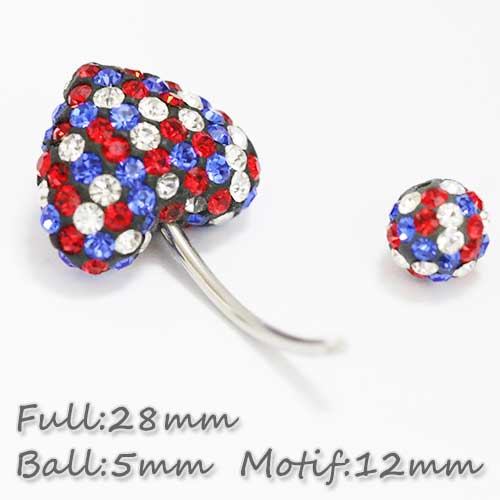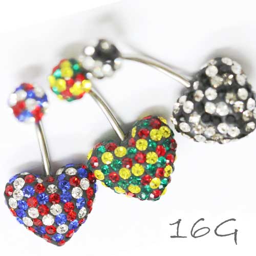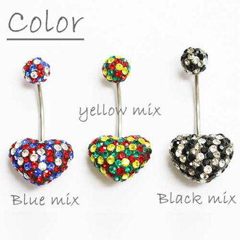 ネコポス送料無料【16G スワロフスキー へそピアス ハート × ミックスカラー】サージカル/ヘソ/ボディピアス/ボディピ/バナナバーベル/ピアス/ボディーピアス/キラキラ/ストーン/レディース/スワロ/キャッチ/ボール/へそ/通販/臍/へそピ/ナベル/ステンレス/hamxba